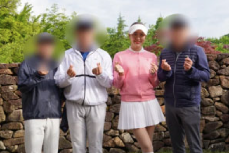VIP 고객과 프로골퍼들이 함께 라운딩하는 장면을 보면서,
