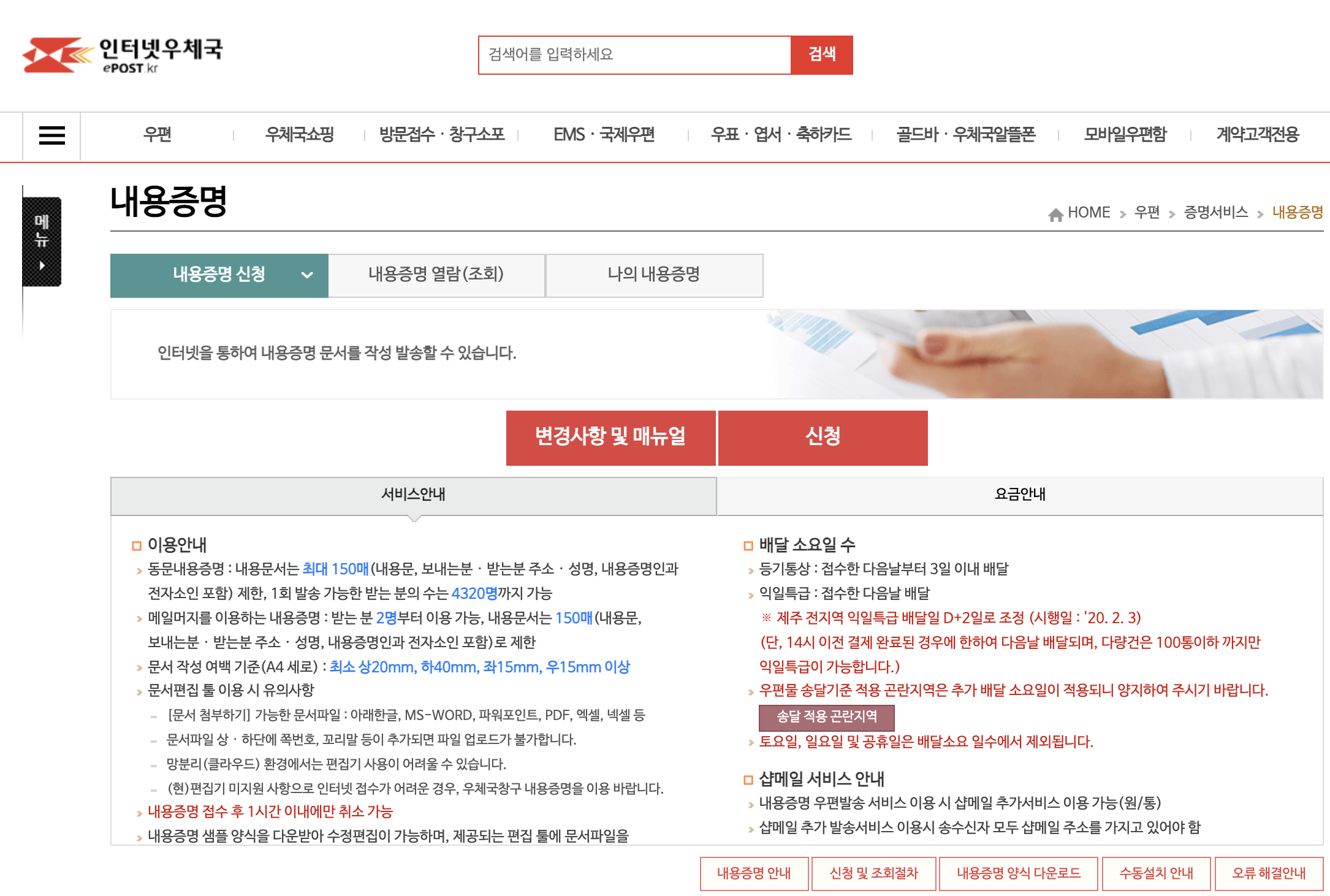 인터넷 내용증명 발송요금