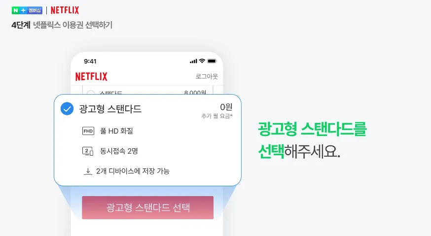 기본적으로 네이버 멤버십을 통해 제공되는 넷플릭스 요금제는 광고형 스탠다드 요금제입니다.