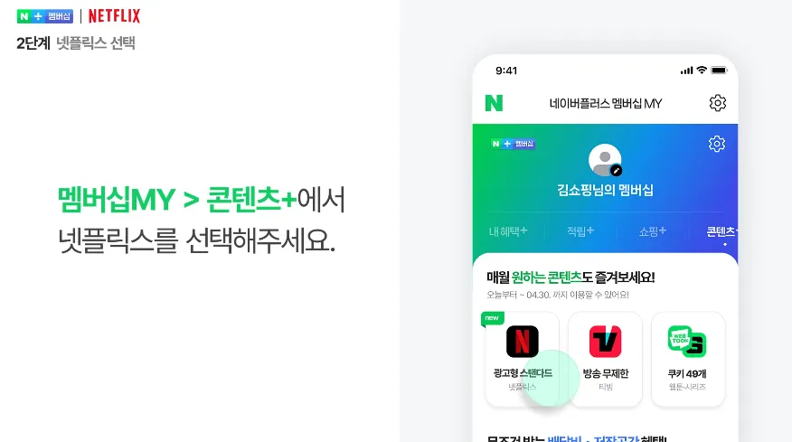 오늘 네이버에서 넷플릭스 혜택을 보고 정말 반가웠는데요, 저는 콘텐츠 이용 예약을 해 놓아서 다음달부터 넷플릭스 광고형 요금제로 무료로 이용할 수 있게 되었습니다. 이걸로 오징어게임2를 봐야겠네요! :)