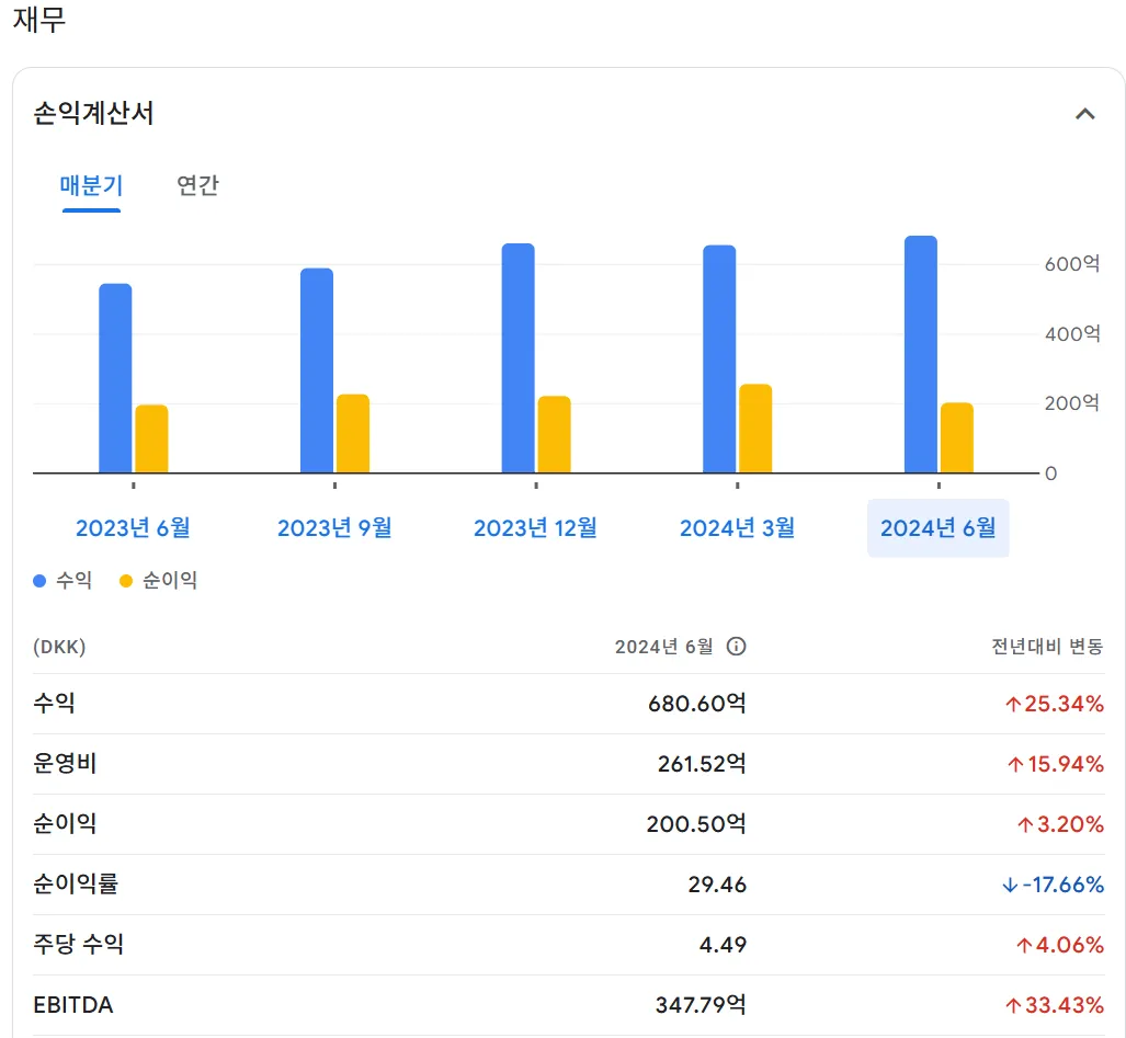 노보노디스크(NVO)는 2024년 11월 06일에 다음 실적 보고서를 발표할 예정입니다.