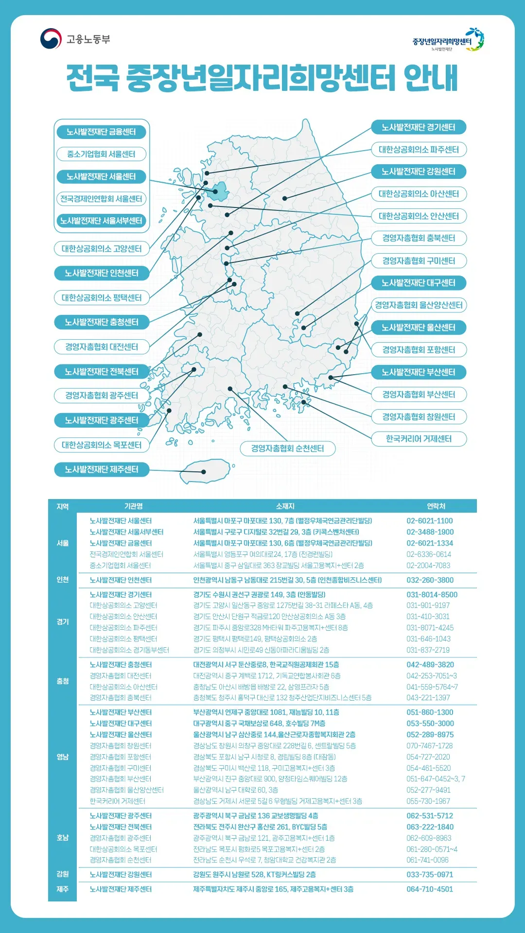 중장년내일센터의 프로그램은 온라인으로 신청할 수 있으며, 전국 35개 센터에서 오프라인 상담과 프로그램 참여도 가능합니다. 서울, 부산, 광주, 제주 등 전국의 주요 도시에 위치하고 있으며, 필요시 가까운 센터를 방문하여 직접 상담을 받을 수 있습니다. 온라인 상담 신청도 가능해 더 편리하게 이용할 수 있습니다.