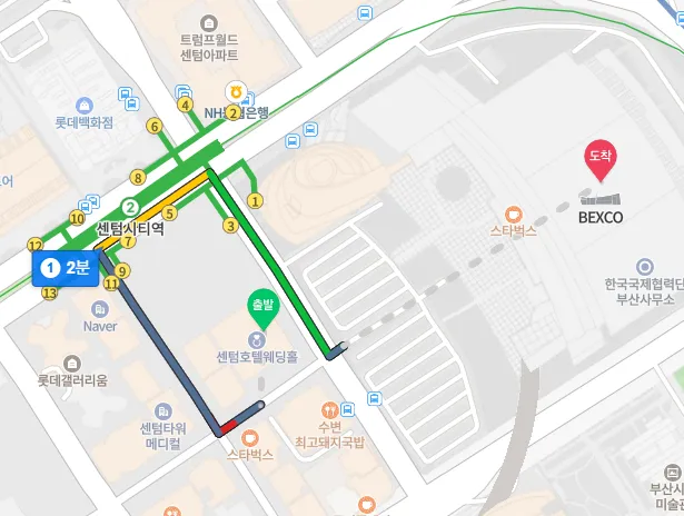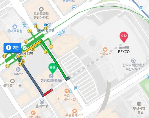 벡스코 바로 근처에 있어 걸어서 갈 수 있습니다.