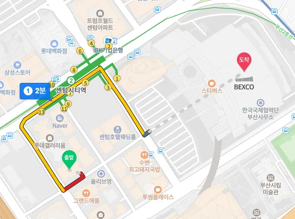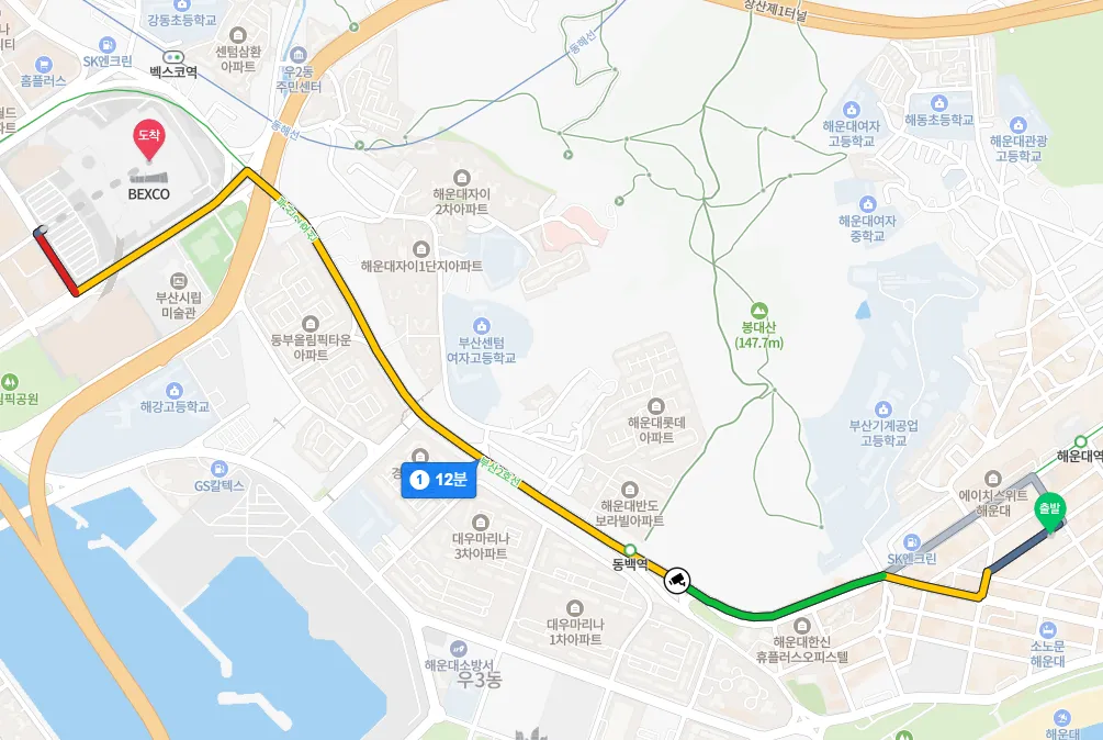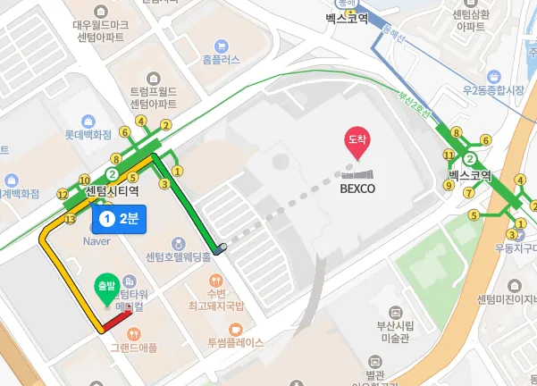 벡스코 바로 근처에 있어 걸어서 갈 수 있습니다.