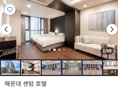 호텔은 아고다에서 예약하는게 편하기 때문에 아고다 위주로 벡스코 주변 숙소를 추천드리겠습니다.