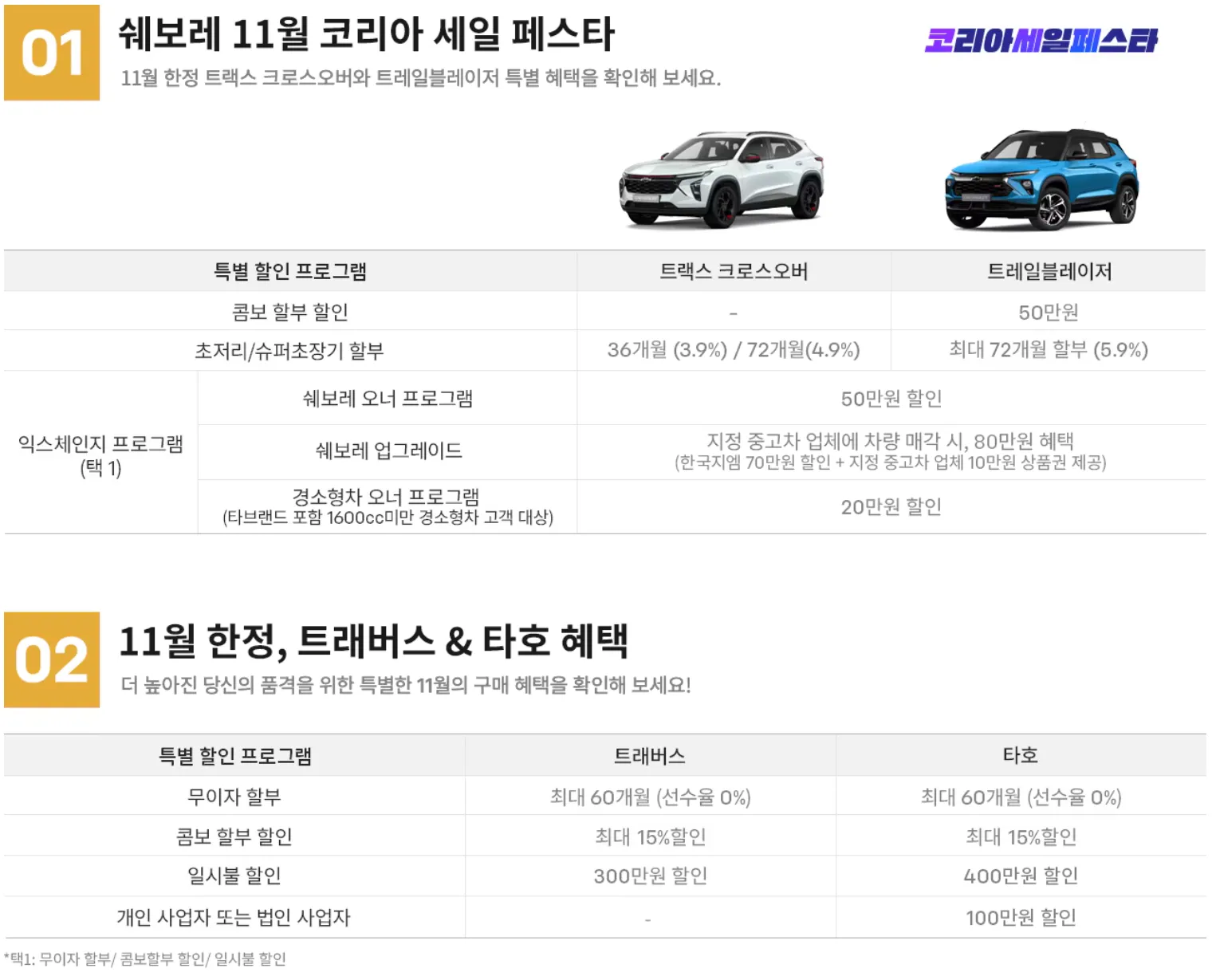 - 기존 쉐보레 차량을 보유한 고객에게 50만 원의 추가 할인을 제공합니다.