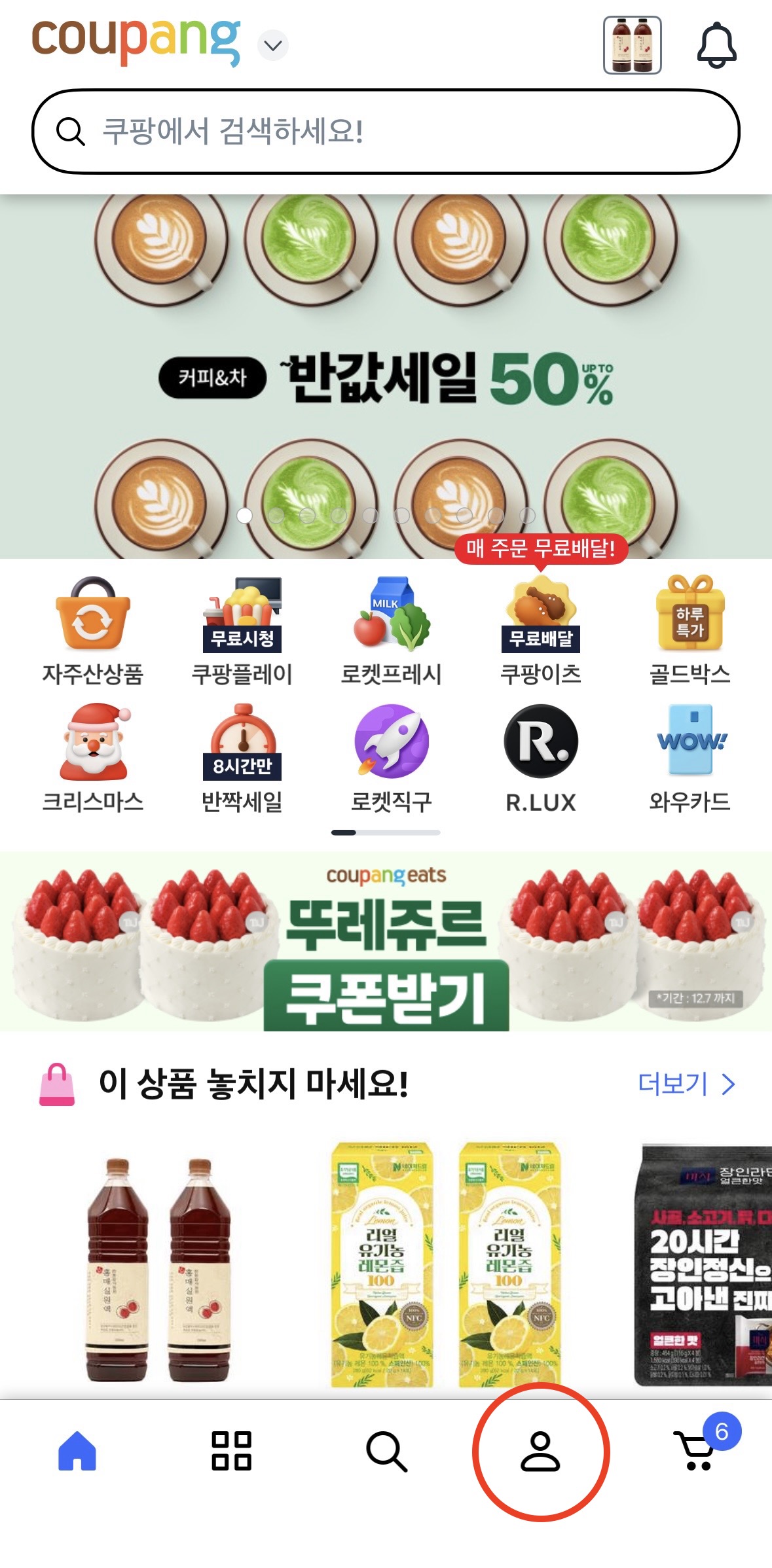 쿠팡에 들어가면 이렇게 홈 화면이 보이시죠?