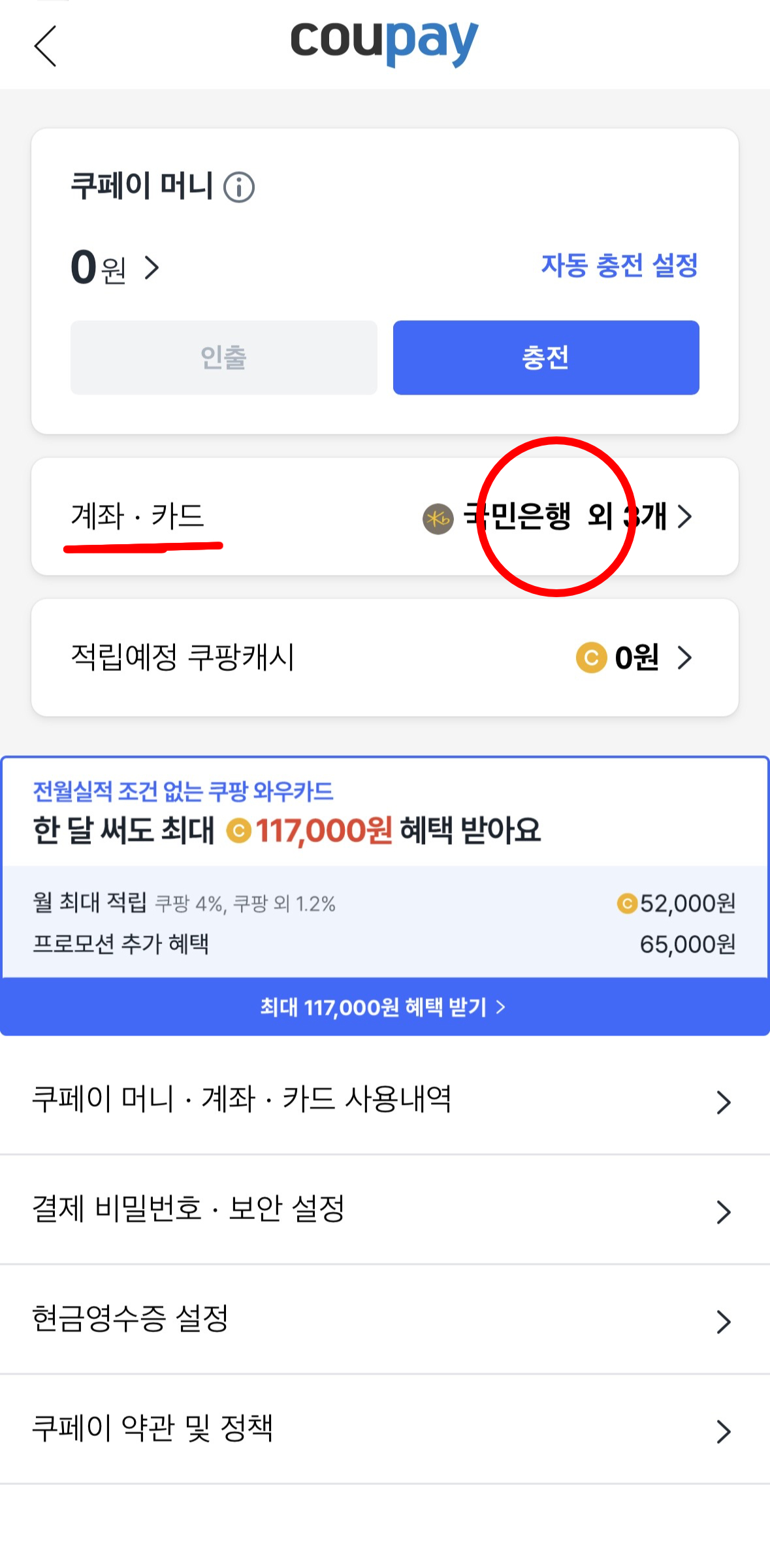 1.쿠팡 와우 멤버십 기본 결제수단으로 등록되어 있는 카드일 경우