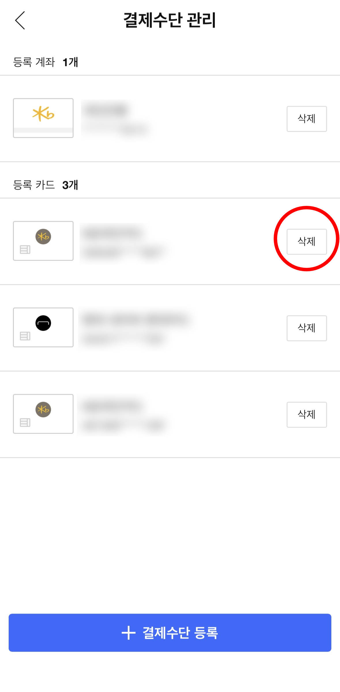 이걸 클릭하게 되면 등록한 카드를 삭제할 수 있습니다.