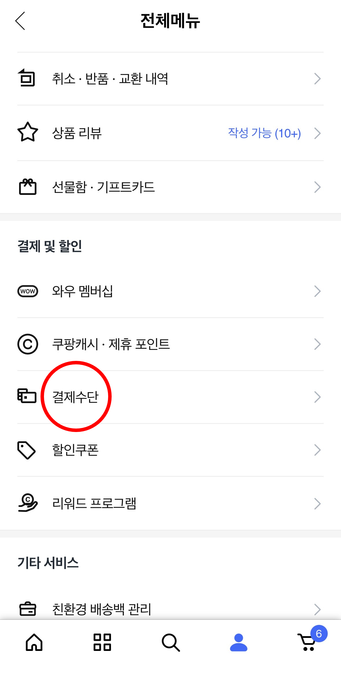 이 화면에서 '결제수단' 이라는 메뉴가 보일겁니다.