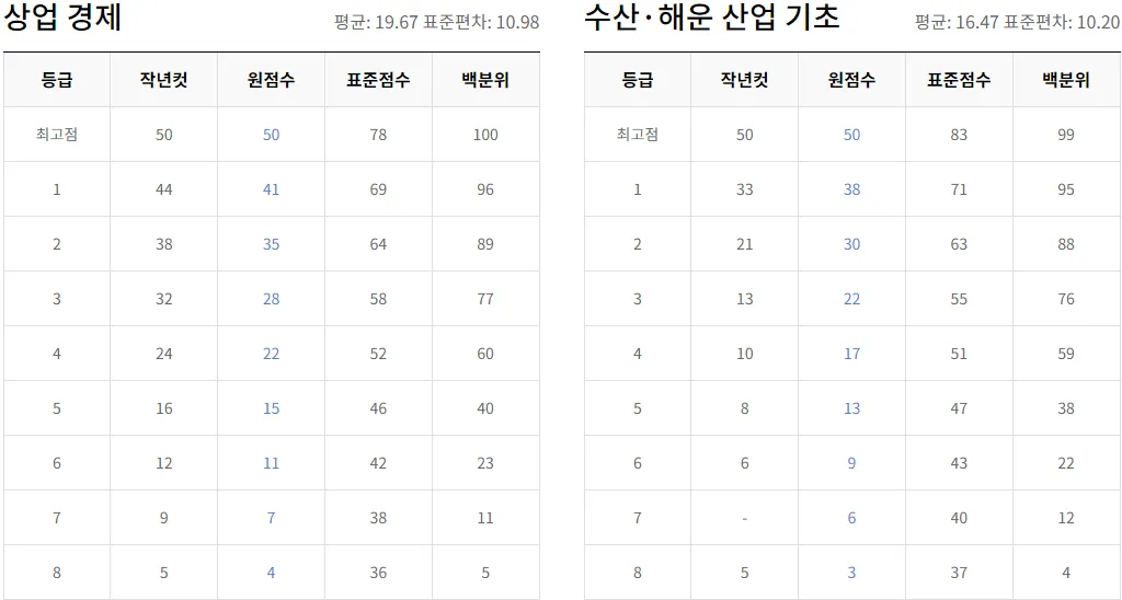 2024 상업경제, 수산해운산업기초 등급컷 예상