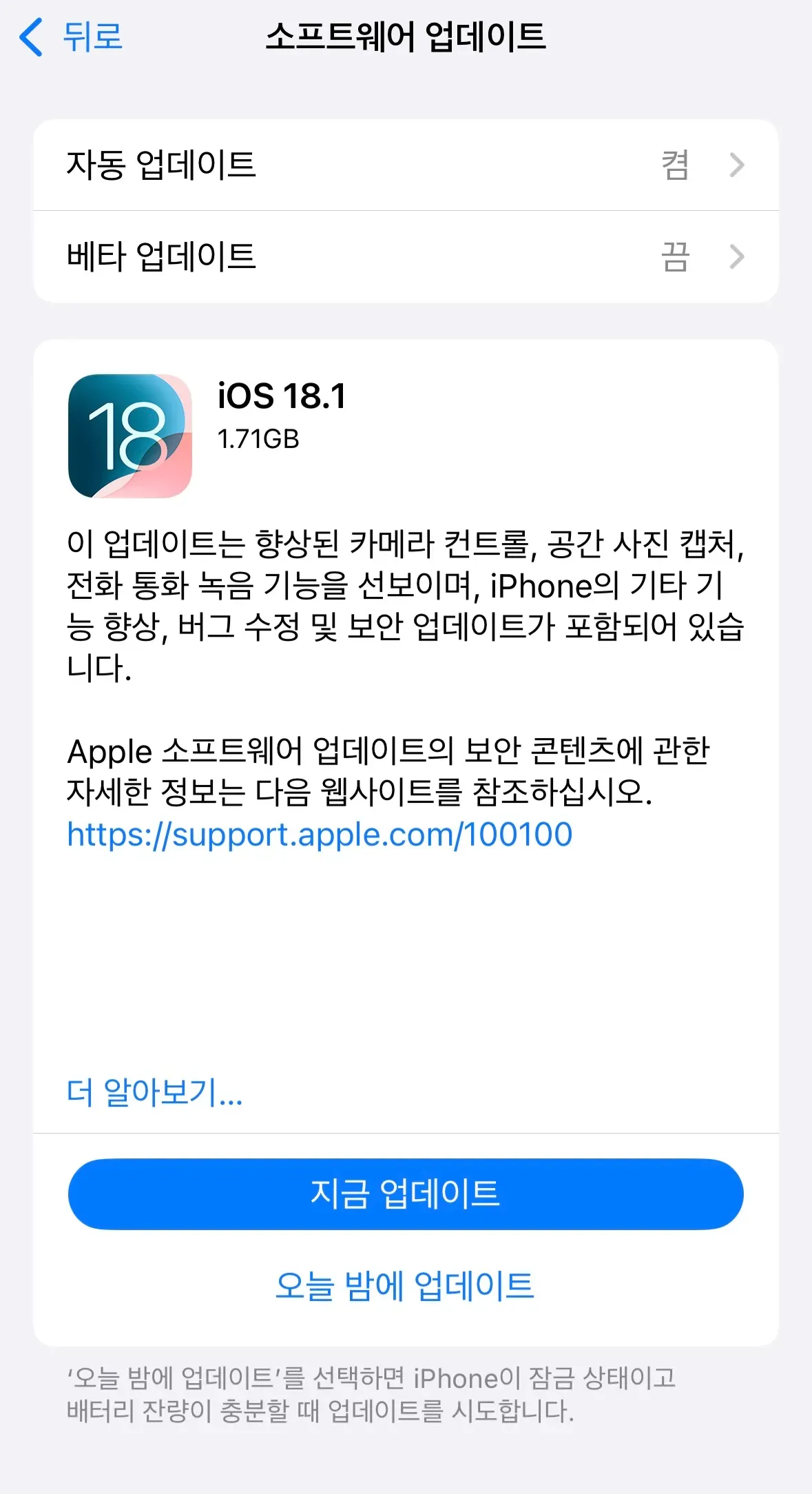 애플의 ios 18.1 소프트웨어 업데이트 다들 하셨나요? 이번 업데이트에는 AI 및 머신러닝 기반 기능을 탑재한 애플 인텔리전스가 포함되어 있습니다. 그리고 그렇게 기다리고 기다리던 아이폰 통화 녹음 기능도 드디어 공식 업데이트 되어 사용이 가능합니다. 업데이트된 기능이 너무 많아 일상에서 다 쓸지는 모르겠지만 미리 알아두면 언젠간 써먹겠죠? 그리고 업데이트된 기능 몇가지를 써보니 써먹을 곳이 많을 것도 같습니다.